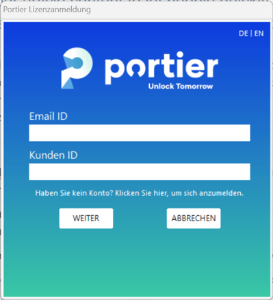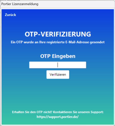 Sollten Sie Unterstützung bei der Aktivierung oder Verwaltung Ihrer Lizenz benötigen oder Ihre Aktivierungs-E-Mail nicht finden, kontaktieren Sie bitte unseren Support unter support@portier.de.