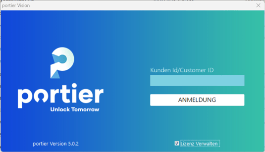 Um Ihre portier Vision 5 Software zu aktivieren, benötigen Sie Ihre Kundennummer und Ihre E-Mail-Adresse. Diese Daten sind in der Aktivierungs-E-Mail enthalten, die Sie nach dem Kauf erhalten haben. Bewahren Sie diese E-Mail sicher auf, da Sie diese Informationen für zukünftige Änderungen an Ihrer Lizenz benötigen.