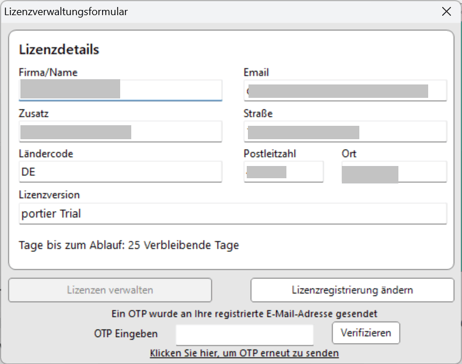 Lizenzaktivierung und -Verwaltung für portier Vision 5